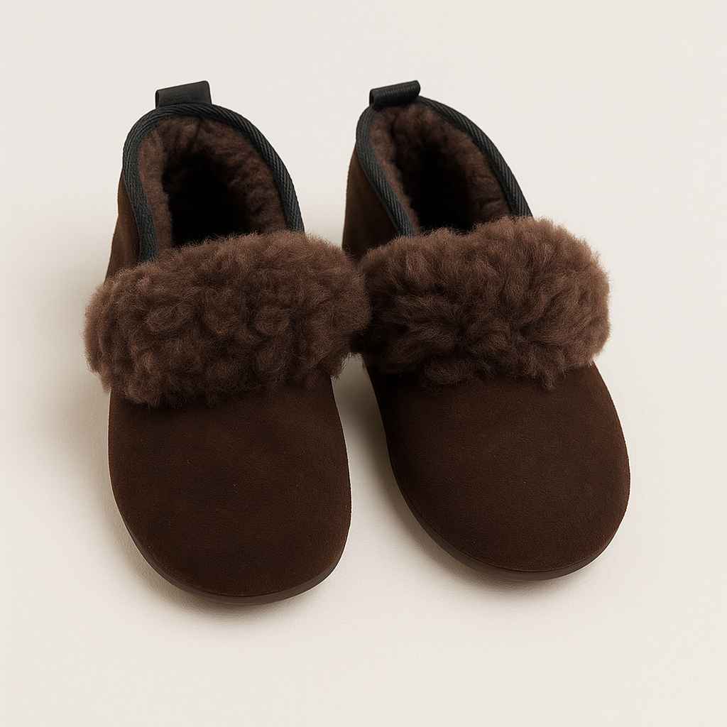 Warme Kinderfüße, weiche Naturmaterialien und liebevolle Handarbeit – diese Lammfell-Hausschuhe sind ideal für Babys und Kleinkinder.